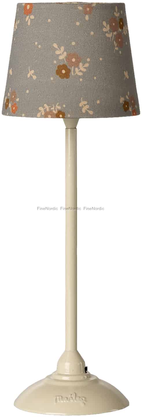 Ethvert miniaturehjem har brug for et strejf af varme, og det leverer denne udsøgte gulvlampe fra Maileg i rigt mål. Den robuste metalfod, udført i en blid sandfarve, føles vidunderligt klassisk, mens det diskret prægede Maileg-logo er et stille løfte om autentisk dansk design. Lampen krones af en stofskærm med et fint blomsterprint i jordnære toner, der bringer et pust af en landlig have indenfor, klar til at oplyse utallige små scener.