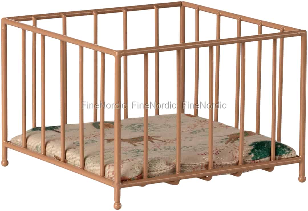 Sørg for, at dine mindste Maileg-venner har et trygt og smukt sted at hvile og lege. Denne udsøgt fremstillede miniaturekravlegård med sin bløde, mønstrede madras er et yndigt midtpunkt i ethvert børneværelse i din miniatureverden.