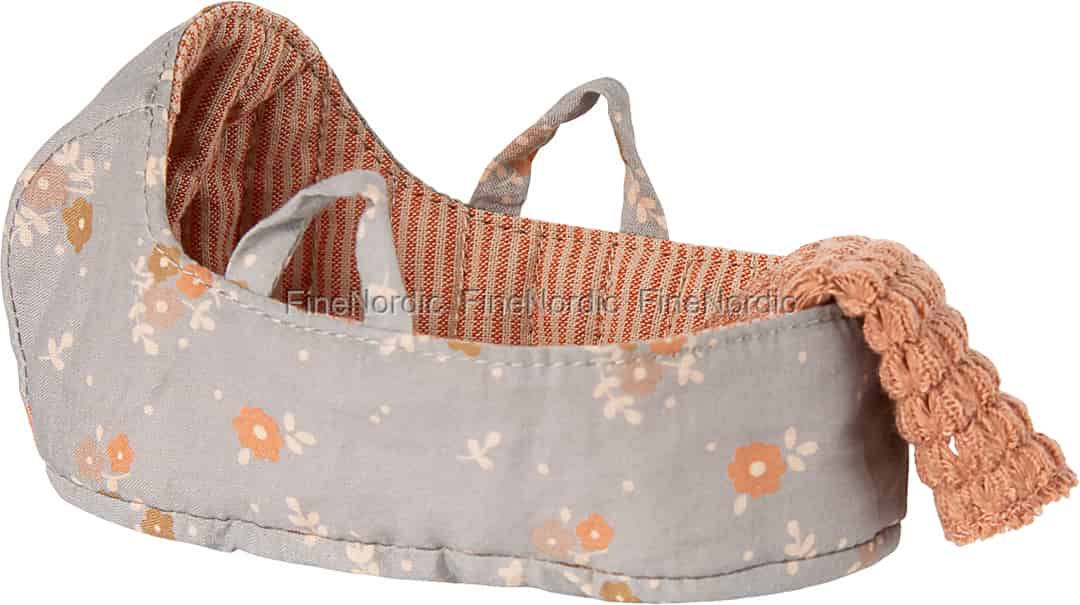 Enhver lille ven fortjener et blødt sted at hvile sit hoved efter en dag fuld af eventyr. Med Maileg miniatureliften kan du give din micro-kanin eller -hare en smuk og hyggelig seng, så den altid har det behageligt. Ydersiden, prydet med et fint blomstermønster på støvet blåt stof, hvisker om stille landhaver, mens det varme, stribede inderfor skaber en dejlig kontrast. Det er et lille, trygt fristed, designet til at blive båret fra rum til rum, mens nye historier folder sig ud.
