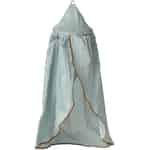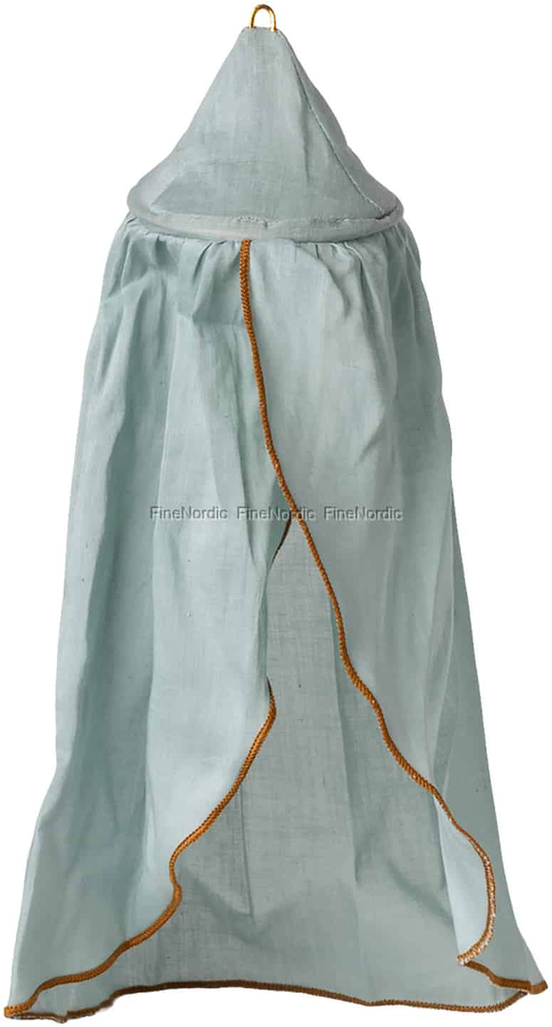 Det er disse gennemtænkte detaljer, der vækker Mailegs verden til live. Sengehimlen hænger let fra sin lille guldstrop, klar til at blive placeret over en vugge, en seng eller endda et hyggeligt hjørne fyldt med bittesmå puder. Det er en genstand, der inviterer dig til at sætte farten ned, skabe en smuk scene og se, hvordan nye historier og magiske øjeblikke opstår fra de mest enkle tilføjelser.
