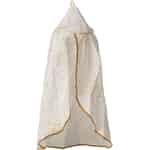 Enhver højtelsket Maileg-ven fortjener et særligt sted at hvile sit hoved. Denne udsøgte miniature sengehimmel forvandler en simpel seng til et kongeligt kammer eller en magisk lysning. Det bløde, råhvide tekstil draperer smukt og er prikket med glimtende guldpletter, der fanger lyset som fjerne stjerner. En fin, flettet guldsnor pryder kanterne og tilføjer det sidste strejf af eventyrlig charme til dette fortryllende stykke tilbehør.