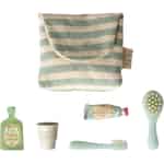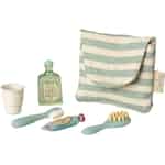 Forestil dig din lille museven vågne med solen, klar til at starte dagen. Den kan børste sine tænder med den lillebitte tandbørste, tage en slurk vand fra det lille krus og pakke sin stribede toilettaske til et storslået eventyr. Hver eneste del i dette sæt er skabt med den kærlighed og sans for detaljer, der gør Maileg så speciel – lige fra etiketterne i vintagestil til den bløde tekstur på stofposen.