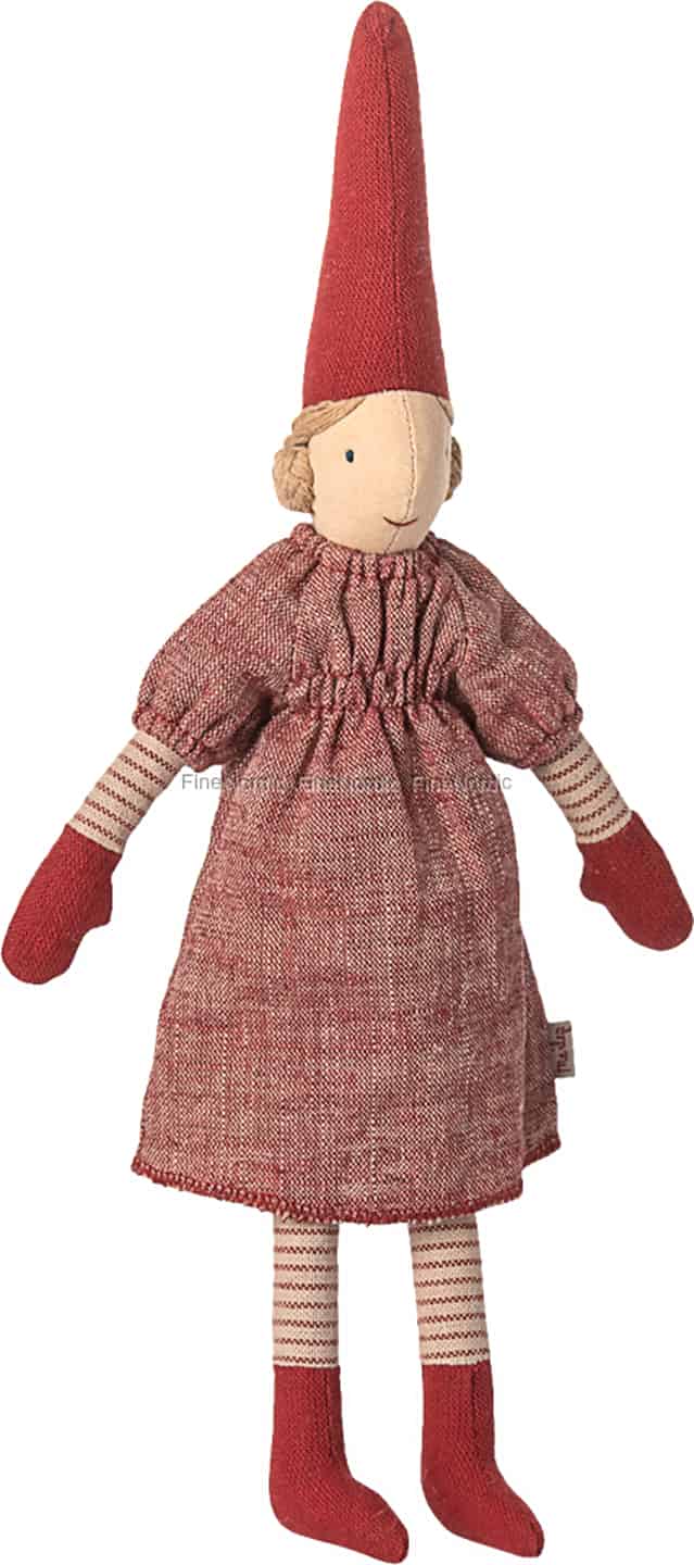 Når vinternætterne bliver længere, kan du invitere lidt skandinavisk magi ind i dit hjem. Denne charmerende Maileg nissepige, med sit venlige smil og festlige røde kjole, er klar til at tage del i din families mest dyrebare juletraditioner.