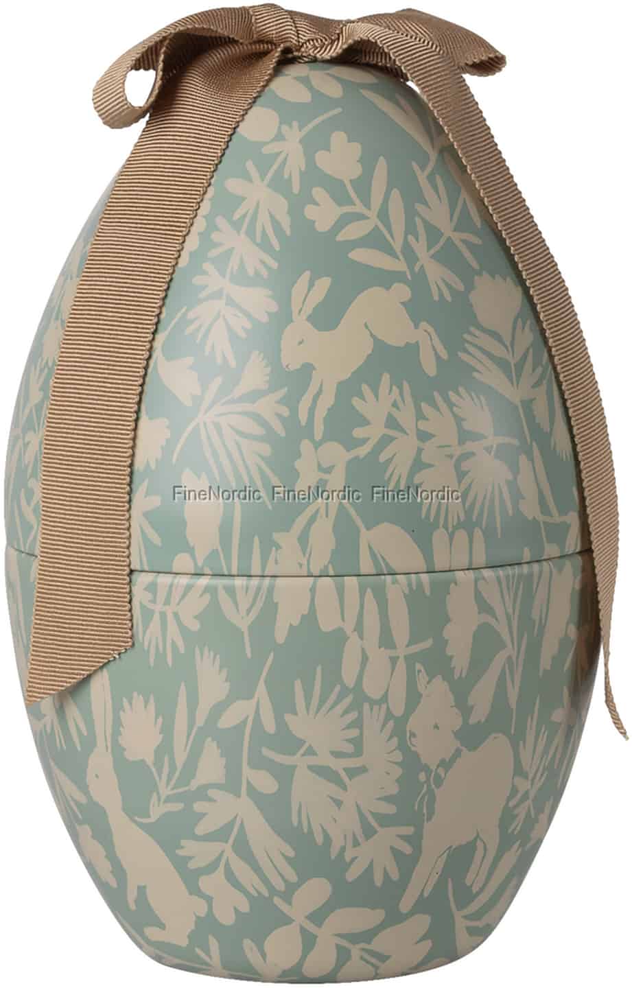 Begynd en ny tradition denne påske med en skat, der er skabt til at vare ved. Maileg genfortolker det klassiske påskeæg og har skabt et smukt metalæg, der indfanger den stille magi fra et skandinavisk forår. Overfladen i en rolig, støvet blå farve er prydet med et yndigt mønster, hvor kaniner hopper, og dådyr gemmer sig mellem spinkle blade. Afsluttet med et enkelt, men elegant grosgrainbånd føles det helt specielt i hænderne og antyder den dyrebare overraskelse, der gemmer sig sikkert indeni, klar til at blive fundet af en ivrig lille eventyrer.