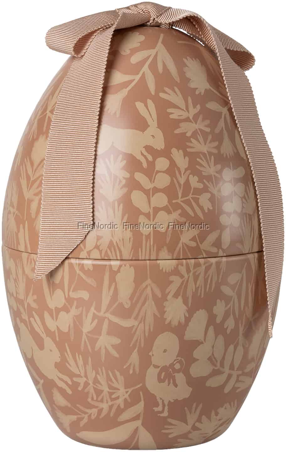 Træd ind i Mailegs finurlige verden, hvor hver en detalje fortæller en historie. Dette udsøgte påskeæg, i en blød pudderbeige nuance, er et lærred for charmerende scener fra skovens liv. Hoppende kaniner og en sød kylling putter sig mellem fine botaniske motiver, der fremkalder den stille glæde på en forårsmorgen. Den holdbare metalkonstruktion føles solid og lover at blive en del af jeres familietraditioner i mange år fremover. Med sit elegante grosgrain-bånd er det et stykke klassisk skandinavisk design.