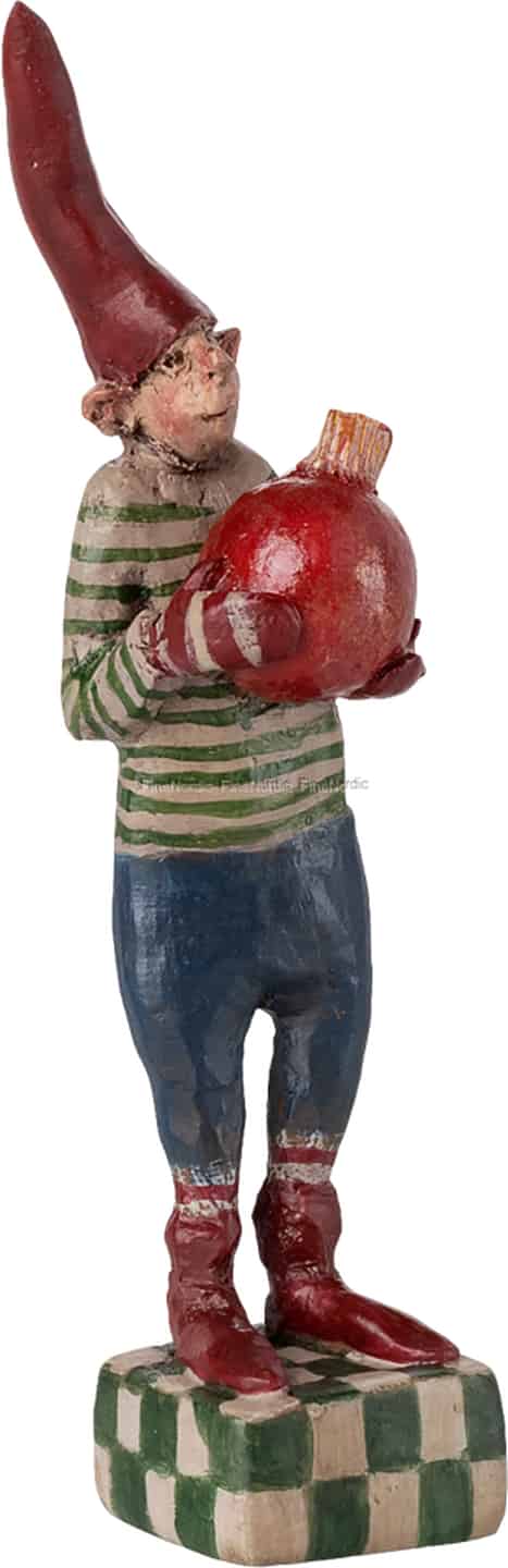 I et stille værksted, hvor duften af gran hænger i luften, bliver Mailegs Noilly Noël nisser levende. Nummer 32 er en særligt munter sjæl, klædt i sin yndlingsstribede trøje og klar til højtiden. Han holder omhyggeligt en skinnende rød julekugle, et symbol på den varme og det lys, han bringer til hjemmet. Hans rustikke, håndmalede finish fortæller en historie om kunstfærdighed og omhu, fra spidsen af hans høje røde hue til hans solide, ternede fod. Hvert penselstrøg fanger en følelse af tidløs folklore og inviterer dig til at sætte farten ned og værdsætte sæsonens simple magi.