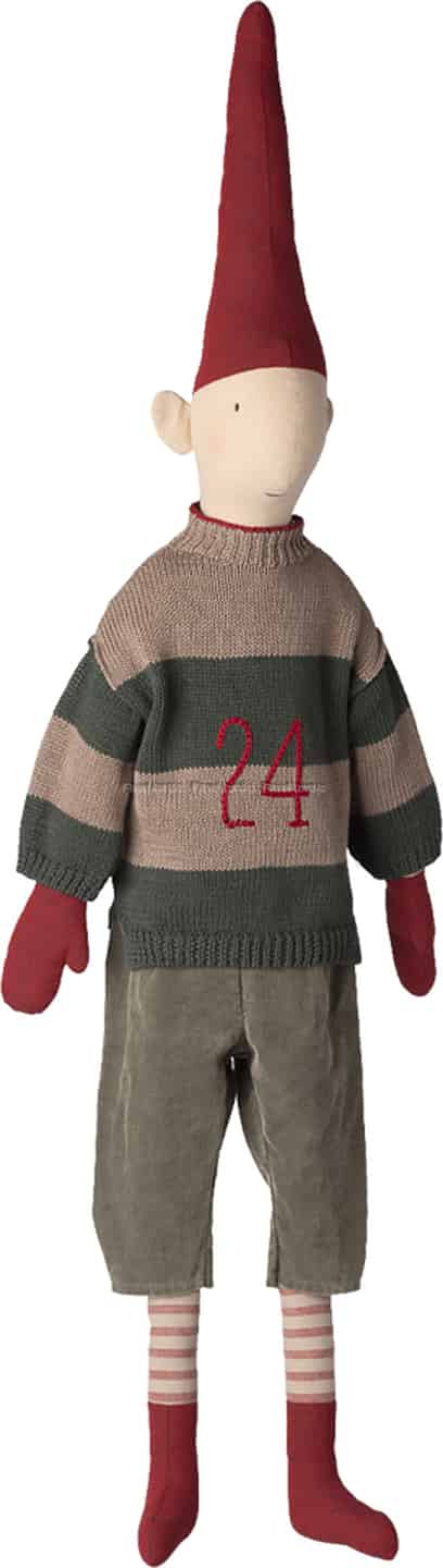 Forestil dig juleaftens stille magi, hvor en blid vogter holder øje med dit hjem. Denne charmerende Maileg Pixy, med sit venlige udtryk og hyggelige trøje, bringer den hjertevarme ånd fra en traditionel skandinavisk jul direkte hjem til din familie.
