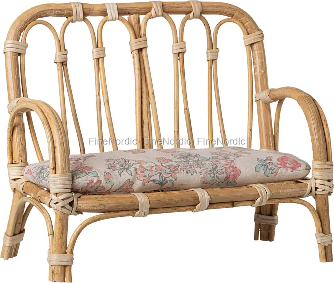 Inviter dine Maileg-venner til at nyde en stille stund på denne smukke rattansofa. Med sin klassiske form og bløde blomstrede hynde er den et vidunderligt midtpunkt for nye fortællinger og et behageligt sted, hvor en kær ven kan hvile sig efter en lang dags leg.