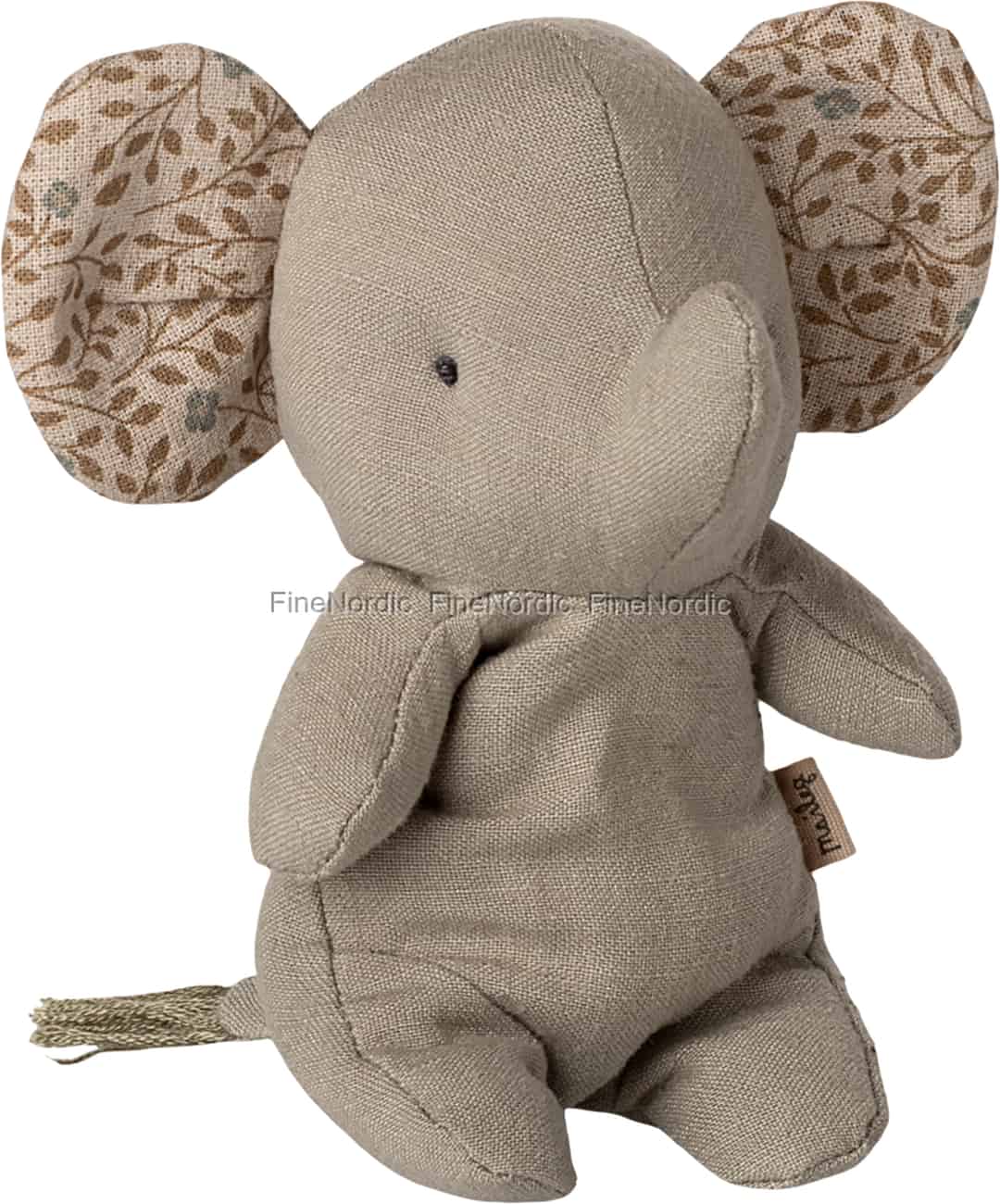 Byd en ny ven velkommen i dit hjem med denne kære miniatureelefant fra Mailegs Safari Friends-kollektion. Hans blide sjæl er fanget i de venlige, broderede øjne og den bløde, jerngrå krop med hør-look. Han er en stille følgesvend, designet ikke kun til leg, men også til at blive et elsket minde i mange år fremover. Hans store ører, foret med et smukt botanisk print, lytter opmærksomt til enhver hvisket hemmelighed og godnathistorie.
