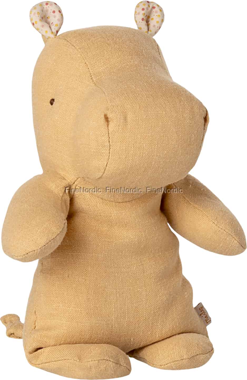 Mød den blideste flodhest i Mailegs safarifamilie, en ven, der venter på at tage del i stille eventyr. Den er skabt af det blødeste, cremegule tekstil, og dens venlige ansigt og krammevenlige form inviterer dit barn ind i en verden af fantasifuld historiefortælling.