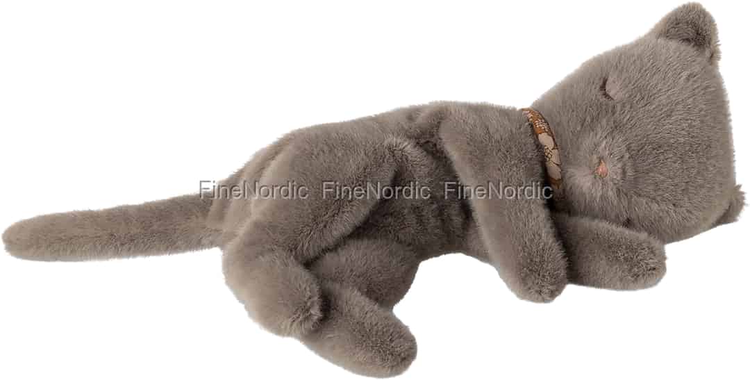 I Mailegs magiske verden er selv de mest stille øjeblikke fyldt med forundring. Denne kære, sovende killing er den perfekte legemliggørelse af den fred, med sin utroligt bløde grå pels og en afslappet stilling, der antyder de sødeste drømme. Hver detalje, fra de enkle, broderede træk til den fine blomsterkrave, er omhyggeligt designet for at skabe ikke bare et stykke legetøj, men en sand følgesvend. Det er en ven at holde tæt ind til sig under højtlæsning eller en fredfyldt tilstedeværelse, der våger over dit barn, mens det glider ind i søvnen.