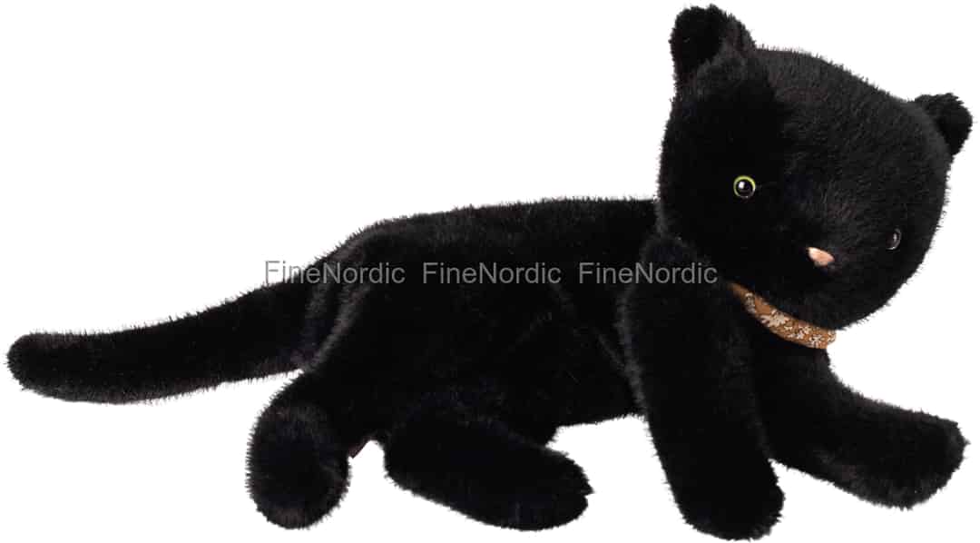 Med sin dybsorte, fløjlsbløde pels og sjælfulde grønne øjne er denne Maileg-killing mere end bare et stykke legetøj; den er begyndelsen på et smukt venskab. Hver en detalje, fra spidsen af dens lille lyserøde næse til det charmerende mønstrede halsbånd, er omhyggeligt designet for at skabe en ven med sin helt egen personlighed. Dens blide, afslappede stilling antyder, at den tålmodigt venter på, at en historie skal begynde, klar til at lytte til hemmeligheder eller krølle sig sammen til en hyggelig lur på en solrig plet.