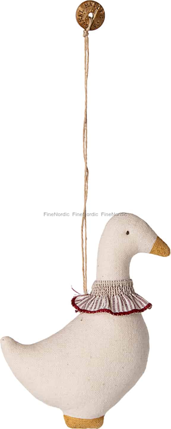 Byd et strejf af Mailegs fortryllende verden velkommen i dit hjem med dette skønne stofornament af en gås. Skabt med den omhu og detaljesans, der kendetegner dansk design, er denne lille karakter klar til at blive en del af dine mest elskede julefortællinger. Den bløde, teksturerede bomuldskrop føles vidunderlig at røre ved, mens dens lille perleøje og smarte, rød-stribede krave giver den sin helt egen personlighed. Det er mere end blot pynt; det er en lille ven, der venter på at bringe et smil frem på dine læber.