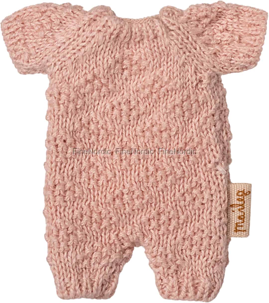 Forbered din lille Maileg-ven på en dag fyldt med blide eventyr med denne udsøgt bløde strikdragt. I en yndig rosa nuance inviterer dens charmerende tekstur til stille stunder og fantasifuld leg og tilføjer et strejf af varme til deres miniaturegarderobe.