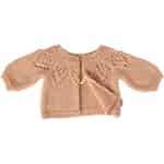 Hver eneste detalje i denne Maileg cardigan er designet til at inspirere til historier. Den bløde, lys rosa strik føles vidunderligt nænsom, og det fine hulmønster over skuldrene fremviser det gennemtænkte håndværk, som Maileg er kendt for. De charmerende pufærmer og den klassiske ribkant skaber en tidløs silhuet, der forvandler et simpelt outfit til noget helt særligt. Det er en beklædningsgenstand, der inviterer dig til at sætte farten ned og værdsætte de små, smukke detaljer, der vækker fantasiverdener til live.