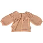 Hver detalje i denne miniaturecardigan er designet til at vække undren. Det bløde, lys rosa garn er strikket til et tidløst stykke tøj med fine, gennembrudte detaljer omkring halsudskæringen, der vidner om omhyggeligt håndværk. De let puffede ærmer tilføjer en finurlig silhuet, perfekt til Mailegs kære kaniner i størrelse 3. Det er mere end blot et stykke tilbehør; det er en lille skat, der giver en elsket ven et nyt lag af personlighed og gør den klar til en stille eftermiddag med fantasilege.