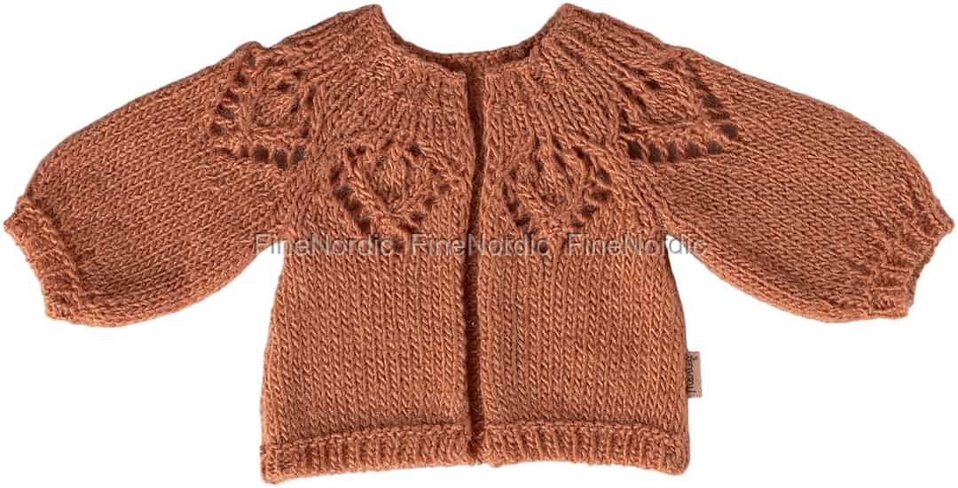 Tilføj et strejf af varme og tidløs stil til din Maileg-vens garderobe. Denne smukt udformede cardigan i en blød vintage rose-nuance er perfekt til kølige eventyr eller stille eftermiddage, hvor der bliver delt historier.
