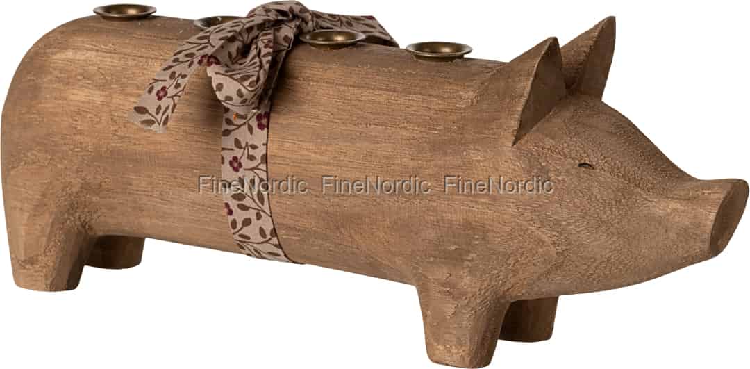 I skandinavisk tradition er julegrisen et symbol på held og lykke og festlige måltider. Maileg genfortolker denne elskede figur som en charmerende adventslysestage, klar til at blive en værdsat del af din families julefortælling. Hver detalje, fra den enkle, udskårne form til den naturlige træstruktur, taler om stille vinterstunder og den enkle glæde ved at være sammen. De fire lysholdere inviterer jer til at holde en pause hver uge og tænde en flamme for at markere den voksende forventning til julen.