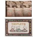 - En charmerende tændstikæskeseng: Deres smukt udformede tændstikæske er mere end blot emballage; det er en hyggelig seng, der opmuntrer til omsorgsfuld leg og giver trillingerne et særligt sted at hvile sig efter deres eventyr.