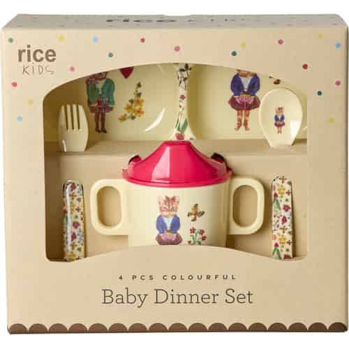 Rice Melamin babyspisesæt i gaveæske "Nathalie Lété" creme - Sæt med 4