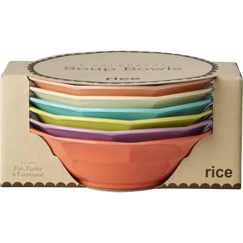 Rice Melamin suppeskåle "Glory Days" farver - 6-pak
