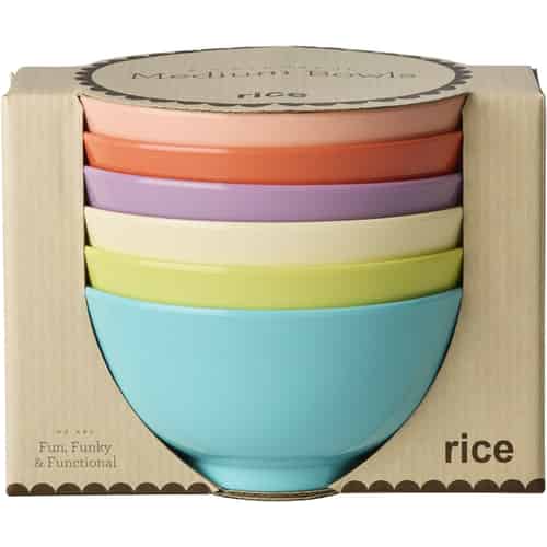 Rice Melaminskåle "Glory Days" farver - Medium - Sæt med 6 i gaveæske