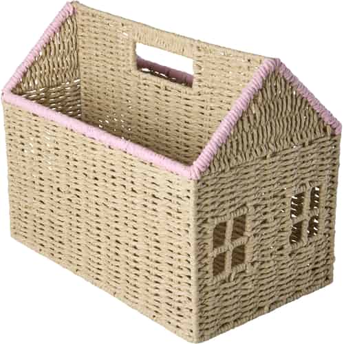 Rice Magasinholder i papirsnor - Husform - Lyserøde detaljer