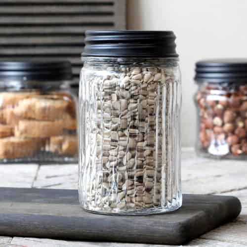 Chic Antique Opbevaringsglas med Riller & Sort Låg H14/Ø8 cm