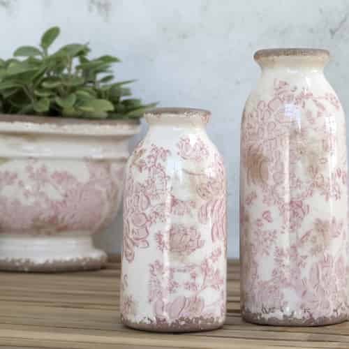 Chic Antique Auray Flaske med Blomster Antik-Creme Lille