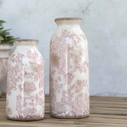 Chic Antique Auray Flaske med Blomster Antik-Creme Stor