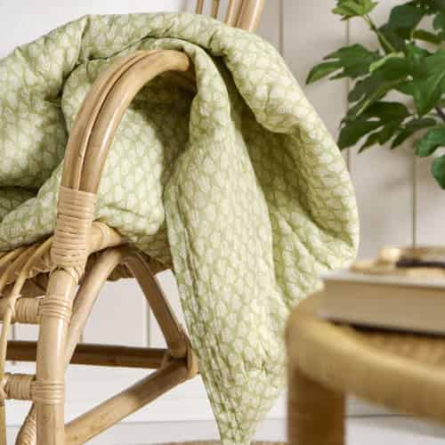 Ib Laursen Quilt Caja Støvgrøn med Hvide Blomster 130 x 170 cm