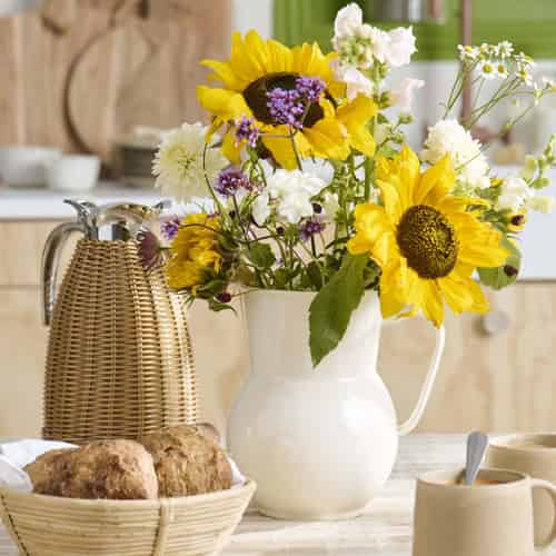 Ib Laursen Viskestykke "Rita" Natur med gule, grønne og lyserøde blomster