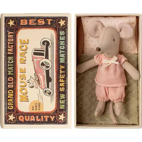 Maileg Lillesøster mus i tændstikæske - med magnetiske hænder