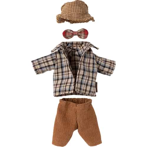 Maileg Kaninsæt Micro - Brun - Blå - med magnetiske hænder