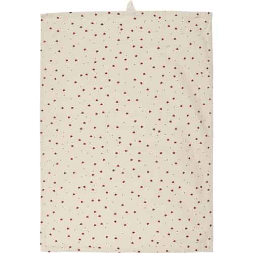 Ib Laursen Viskestykke Emily Natur med Røde Små Hjerter