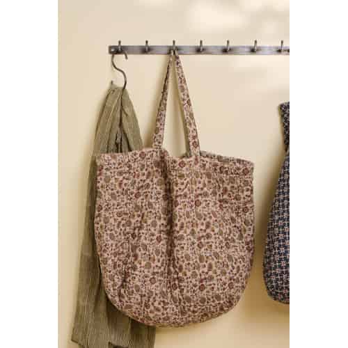 Ib Laursen Taske - Quiltet - Brun med røde, orange og grå blomsterranker