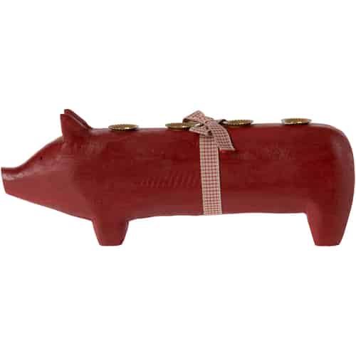 Maileg Trægris Lysestage Stor - Rød