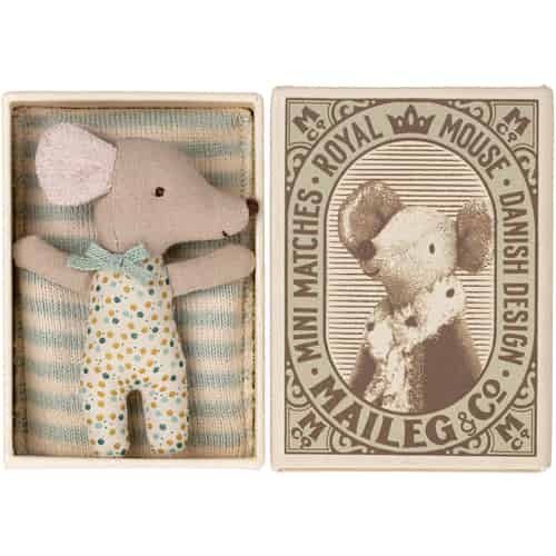 Maileg Sleepy/Wakey Baby Mus i Tændstikæske - Blå
