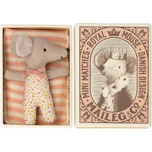 Maileg Sleepy/Wakey Baby Mus i Tændstikæske - Rosa