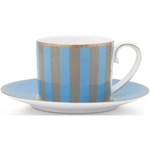 Pip Studio Espressokop & Underkop Love Birds Stripes Blå-khaki