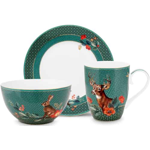 Pip Studio Morgenmadssæt Winter Wonderland Grøn Sæt med 3 i Gaveæske