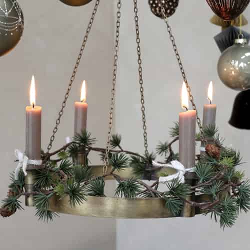 Chic Antique Adventskrans til ca. 2 cm Stearinlys med Kæde til at hænge Antik-Messing