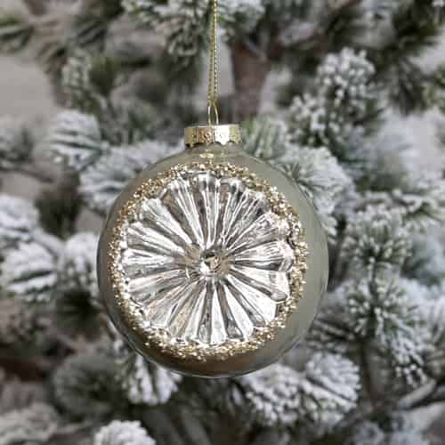 Chic Antique Julekugle med Glitter Mønster Støvgrøn