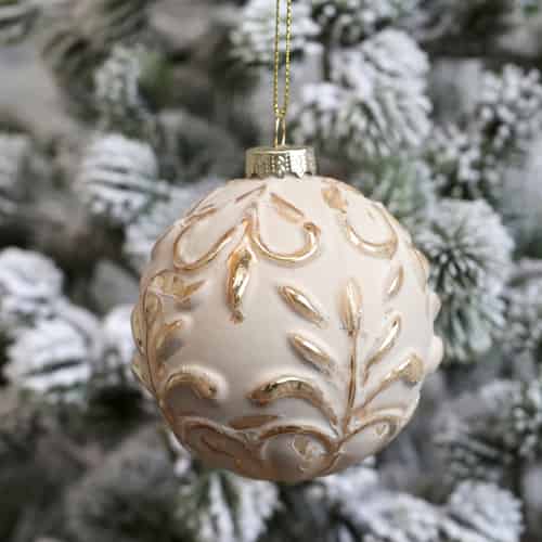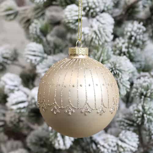 Chic Antique Julekugle med Glitter Mønster Antik-Latte