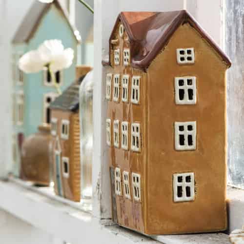 Ib Laursen Hus til Fyrfadslys Nyhavn Mustard med Rød Tag og 1 Skorsten Mustard