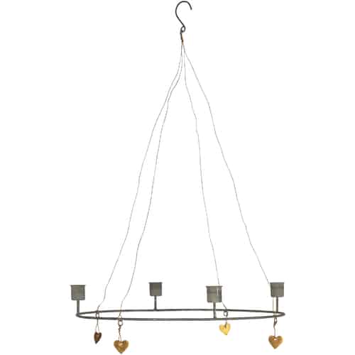 Ib Laursen Adventslysestage til 4 Stearinlys (2,2 cm) med Hjerter og Trådstreng Zink