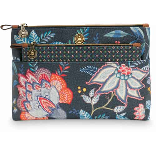Pip Studio Kosmetiktaske Combi Flower Festival Mørkeblå