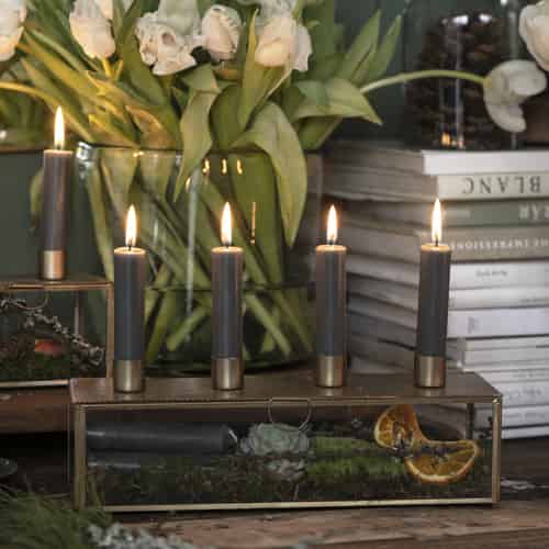 Ib Laursen Lysestage til 4 Stearinlys (2,2 cm) Glasboks med Udstanset Låg Messing