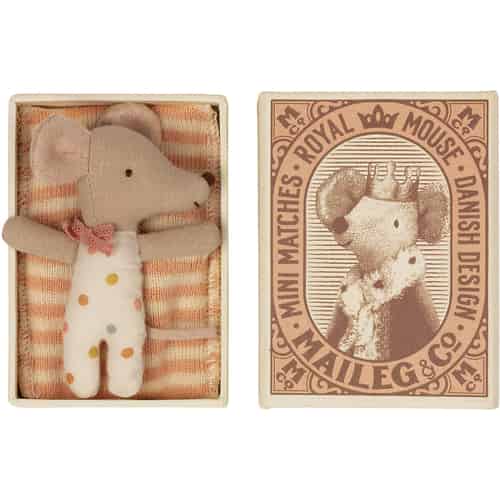 Maileg Baby Mus Sleepy/Wakey i Tændstikæske - Pige