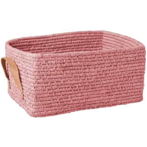 Rice Raffia Kurv - Rektangulær - Læderhåndtag - Soft Lyserød